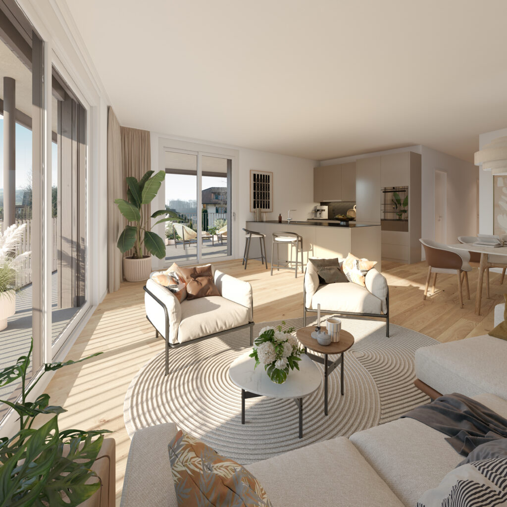 Unser Wohnkonzept: Grosszügige Wohnbereiche, gekoppelt von den privaten Räumlichkeiten und Schlafzimmern. Verkehrsflächen sollen auf ein Minimum beschränkt werden. Lichtdurchflutete, gut durchdachte Räume, die ein Gefühl von Freiheit und dennoch Behaglichkeit ausstrahlen.